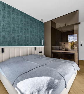 - masterbedroom z łazienką wyposażoną w prysznic i garderobą walk-in